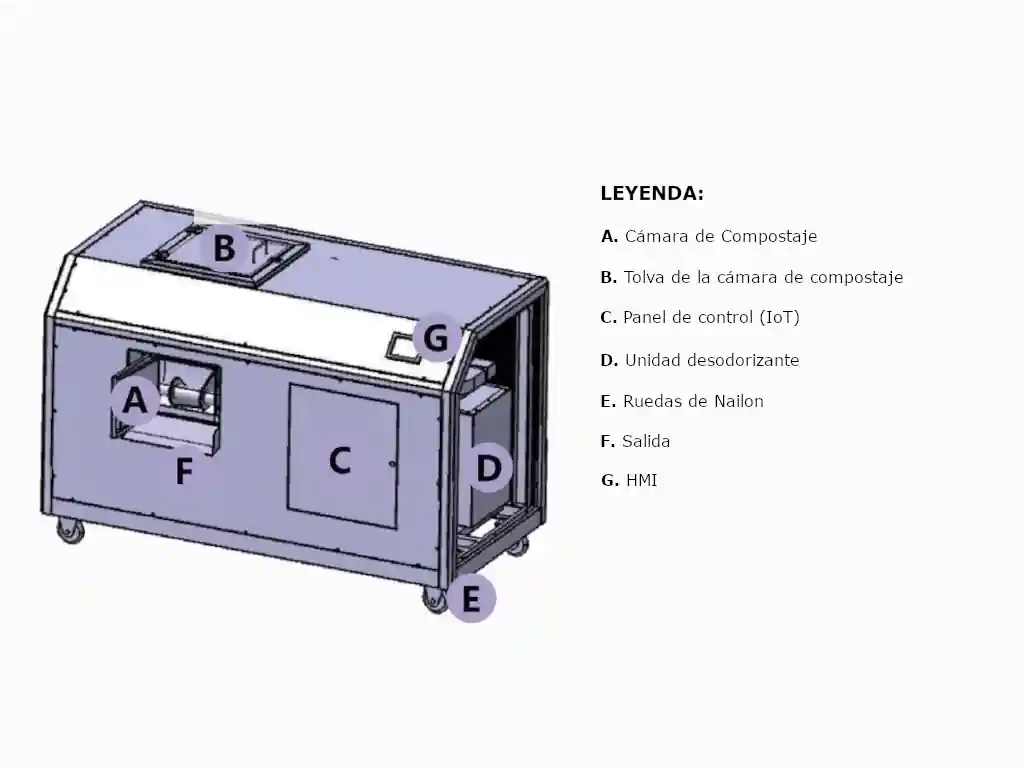 Nota: La configuración (capacidad, accesorios y número de cajones de curado) se adapta a cada emplazamiento y a su logística de biorresiduos.